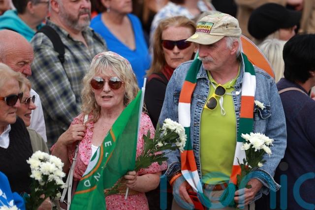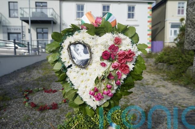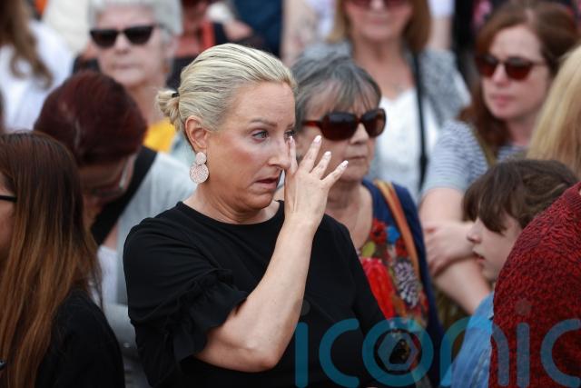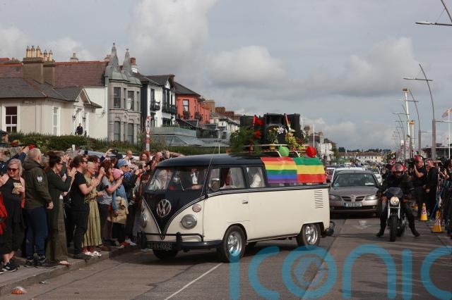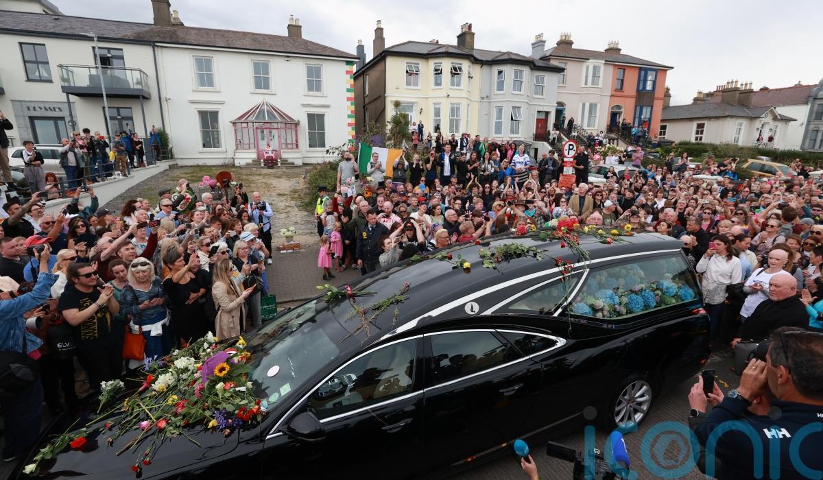 Fans laid flowers and memorials and sang the star’s songs outside her former home in Bray, Co Wicklow, as they waited for the cortege bearing the body of the 56-year-old, who died on July 26.