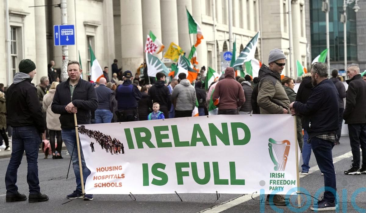 Some protesters carried Irish flags, as well as signs and banners with slogans such as “Ireland is full” and “Irish Lives Matter”.
