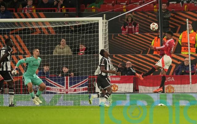Rasmus Hojlund saw a bundled header gathered by Dominik Kotarski having met a cross from Diallo, who saw the ball taken off his toe by Rahman after Garnacho whizzed a low ball to him at the far post.