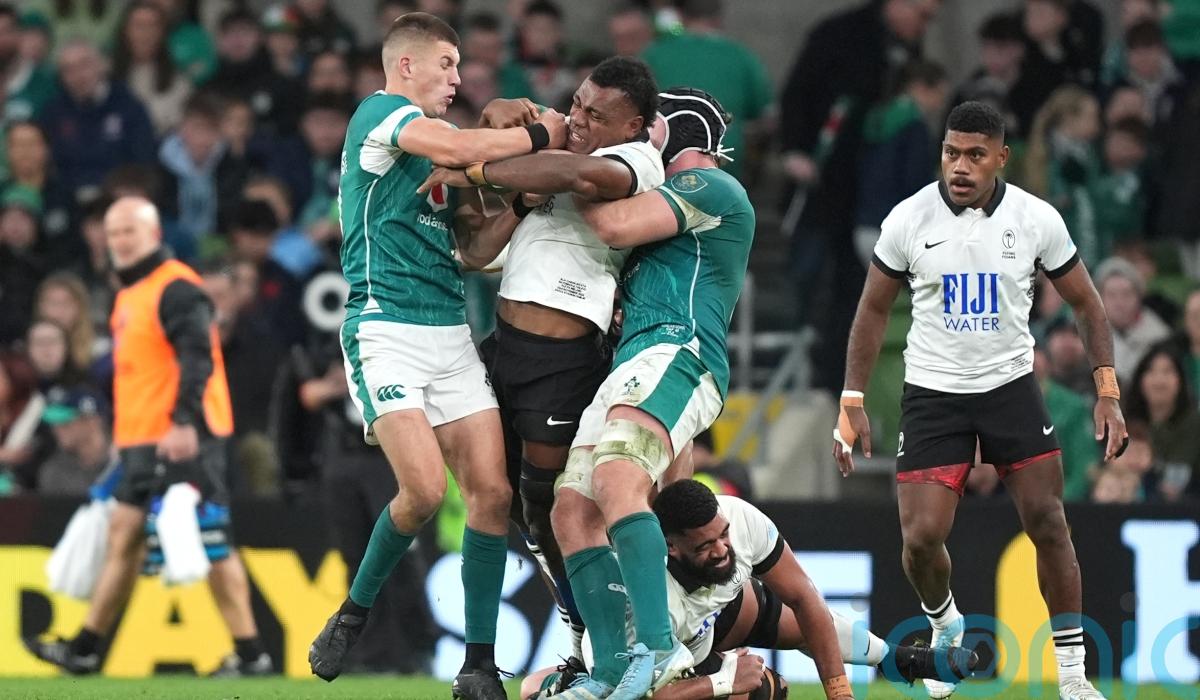 Fiji head coach Mick Byrne suggested Ireland fly-half Sam Prendergast escaped an early red card during his side’s 52-17 defeat in Dublin because he was playing for the home team.