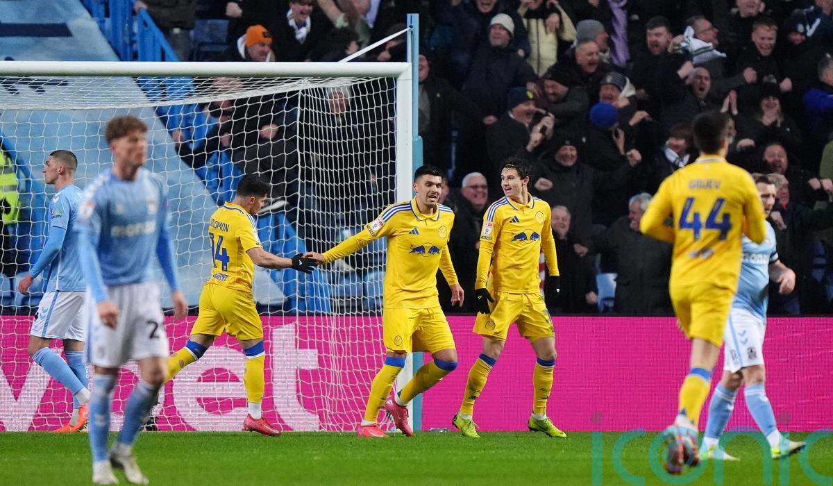 First-half strikes from Joel Piroe and Jayden Bogle helped Leeds stretch their advantage at the top of Championship to five points with a comfortable 2-0 victory over Coventry.