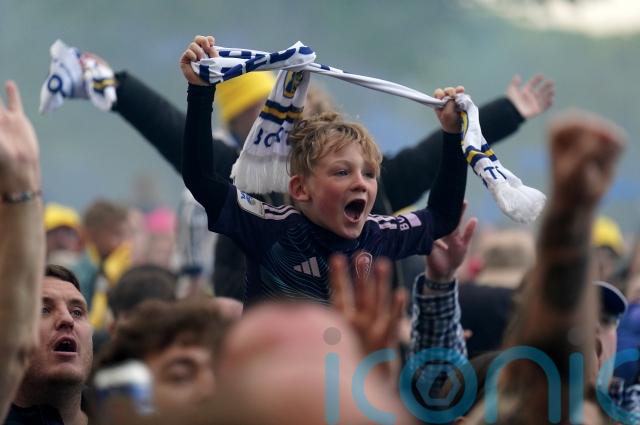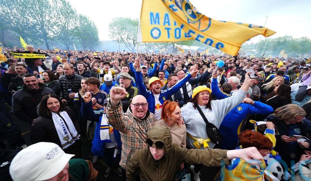 Leeds fans gathered outside the ground in their thousands to celebrate their top-flight return.