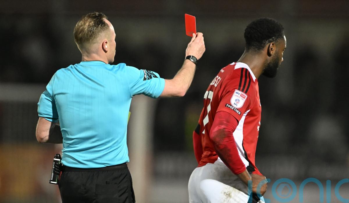 The defender was dismissed in just the eighth minute for bringing down Kyle Hurst and denying a goalscoring opportunity after a mix-up in the home defence.