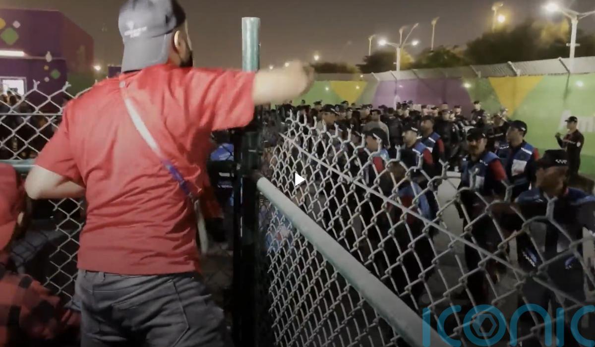 Riot police, mounted officers and dogs were deployed amid chaotic scenes outside a World Cup stadium in Qatar.