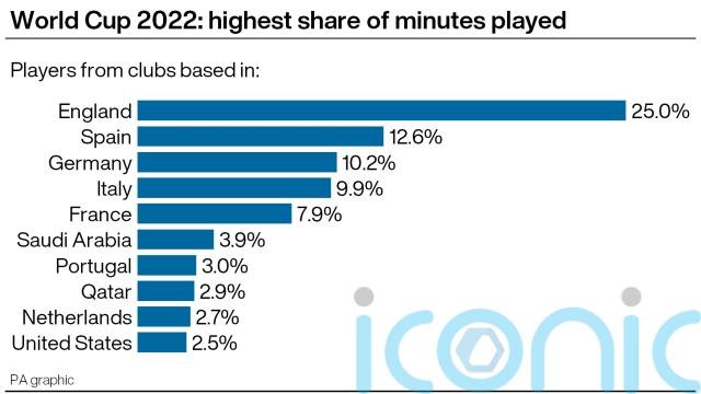 English-based players accounted for a quarter of minutes played at the World Cup, PA news agency analysis shows.