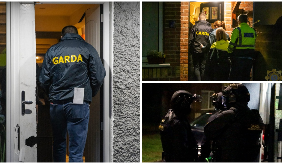 Footage released by gardai shows members from various units, including the Armed Support Unit, being deployed as they carried out several raids and made arrests early this Saturday morning.
